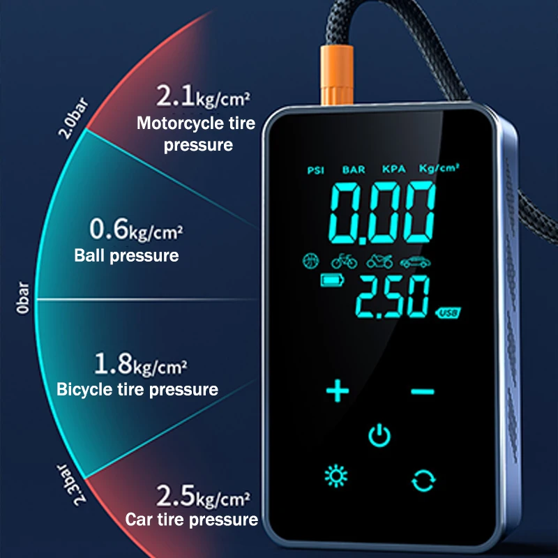 2. Advanced Touch Screen: Upgraded with a full touch screen interface, this wireless air pump allows for quick and precise inflation settings, enhancing efficiency and user experience.